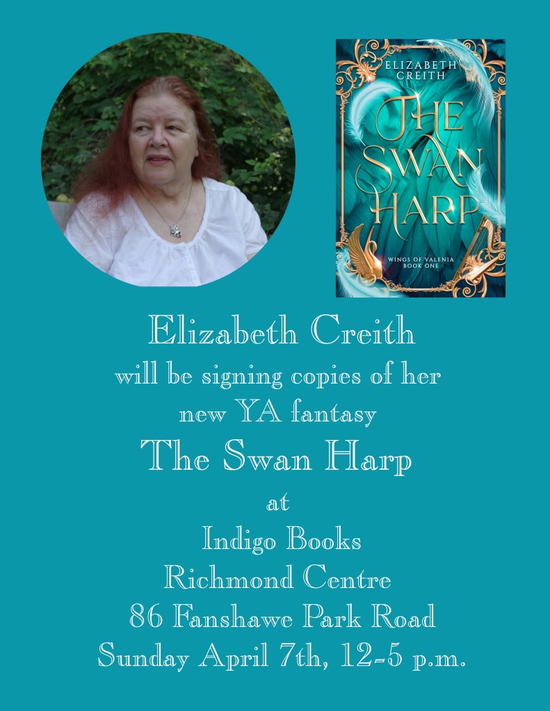 In between those dates, I have a book signing at Indigo North in London Ontario, Sunday April 7th from noon to 5:00 p.m.